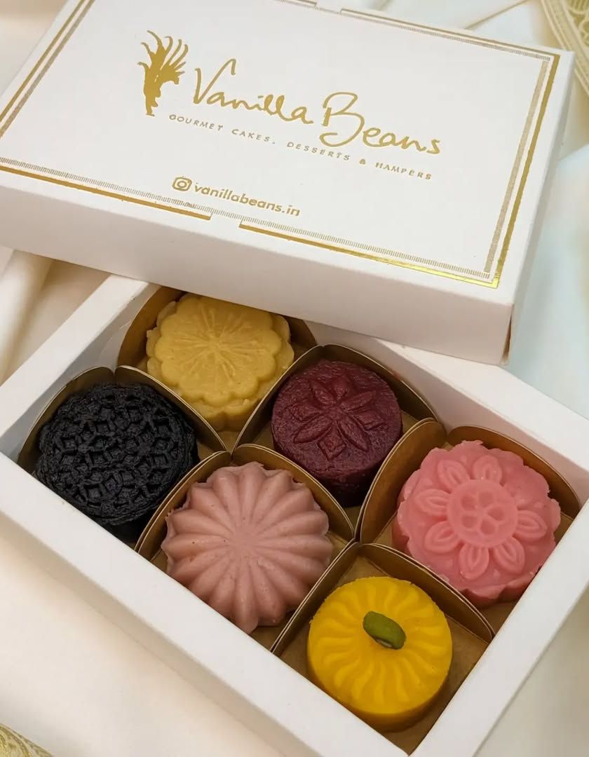 We've combined the texture of soft, melt-in-your-mouth pedha with classic cake flavors. Each piece has a delightful center filling. We offer a wide range of flavors like Red Velvet, Chocolate Hazelnut, Puran Poli, and Kaju Katli, perfect for Diwali, weddings, or any festive gifting.