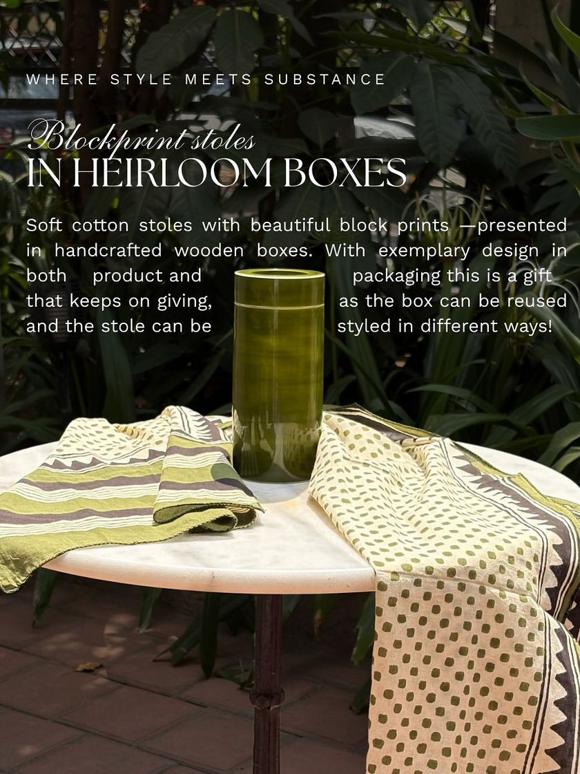 We specialize in creating memorable gift sets that tell a story. This collection showcases how we combine different handcrafted items, from stoles and toys to stationery and decor, and present them in beautiful, reusable packaging like wooden boxes or kora pouches.