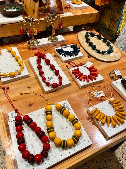 Discover our statement accessories that blend tradition with modern function. Our collection features surprisingly lightweight wooden jewellery made with organic dyes, and handwoven bags that reimagine nostalgic designs for today's needs.