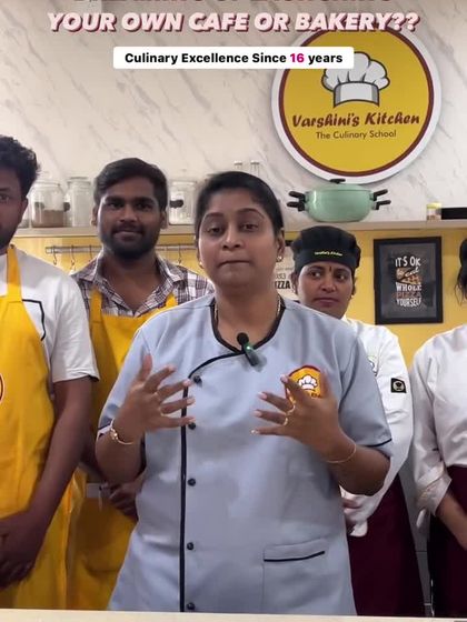 Nanna hesaru Varshini. Welcome to my kitchen! ಅಡುಗೆ ಮಾಡೋದು (cooking) is my passion. Started teaching when I was just a ಹುಡುಗಿ (young girl) at 16. Now, 17 years running this academy, 20+ years cooking, and 5 lakh+ students trained. Students from everywhere, some even started businesses abroad. Got the Bangalore Women Brand Award for Bakery and Confectionery, but real happiness is seeing students become confident, independent. Recipes are just the start, I believe.