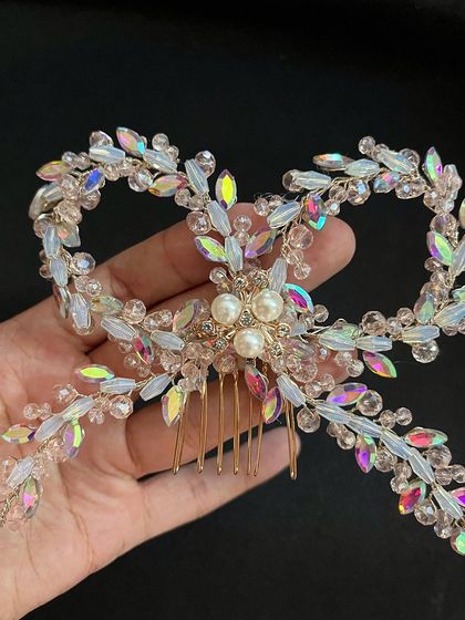 I’ve put together a mix of statement bridal hairpieces and playful finds, each one handpicked. Some are soft and romantic, some are bold and sparkly, and some have that modern Indian vibe that just hits different. Here’s what you’ll find: