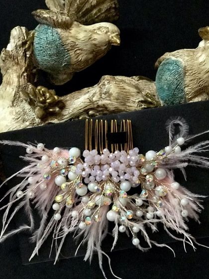 Add a soft, romantic, and dreamy touch to your hairstyle with these feather accessories. My collection includes delicate feather pins and more dramatic feather combs embellished with pearls and crystals, available in a variety of colors.
