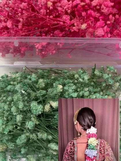 For brides who love a natural, bohemian vibe, I offer real dried floral accessories. You'll find colorful baby's breath and delicate hydrangea petals, perfect for weaving into braids or creating custom floral hair pins.