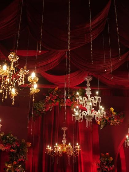 I design sangeet and reception nights that are all about energy, glamour, and celebration. From dazzling dance floors and dramatic lighting to lush floral ceilings and custom bar setups, I create an immersive party atmosphere. My designs often feature modern elements like mirrored props, LED screens, and sparkling chandeliers to ensure your night is as vibrant and memorable as your love story.