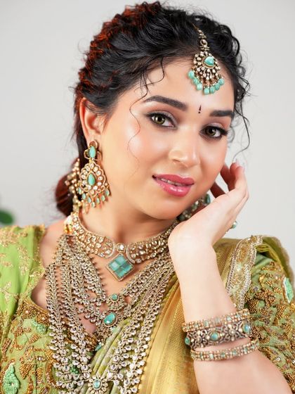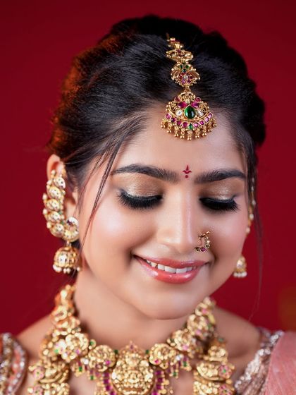 This is my specialty and deepest passion. I create authentic and timeless looks for sacred ceremonies like the muhoortham, pellikuturu, and other traditional functions. My focus is on creating a makeup base that lasts through long events and complements the rich colors of Kanjivaram sarees and the intricacy of temple jewelry.