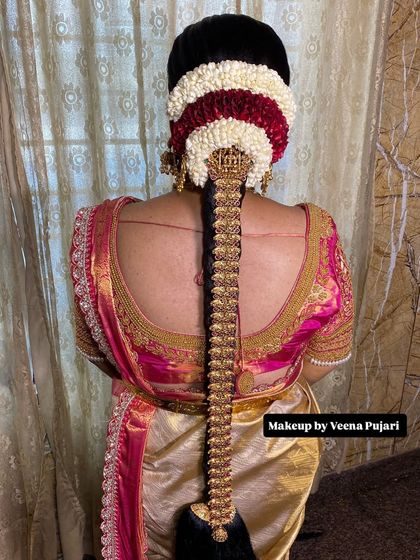 Hairstyling is essential to completing any look, whether it's for a bride or a party guest. I specialize in a variety of styles, from intricate traditional South Indian braids adorned with fresh flowers and accessories to modern, soft waves and elegant updos. These skills are a key part of my professional training courses.