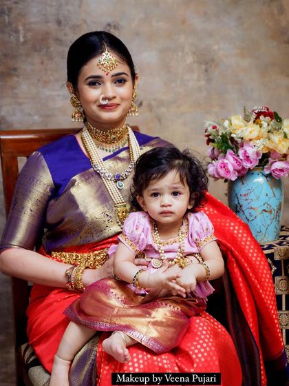 It is an honor to be a part of my clients' most precious family milestones. From the joyful glow of a baby shower (seemantham) to a child's naming ceremony, I create looks that are comfortable, radiant, and perfect for celebrating new beginnings and the beauty of motherhood.