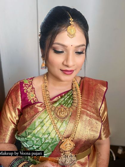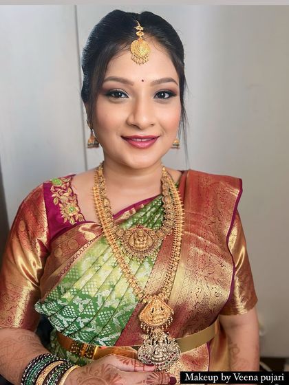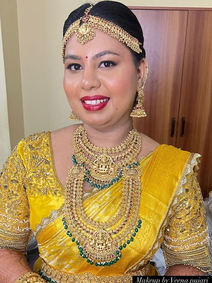Hey, I'm Veena from namma Bengaluru. Makeup artist, educator, and full-time wedding chaser! The best thing? That moment a bride sees herself all dolled up—goosebumps, I swear. Makeup’s just magic, boosting what’s already there. I get to be part of so many real-life fairy tales—weddings, baby showers, you name it. I travel wherever my brushes take me. For me, it’s all about making memories, not just faces.