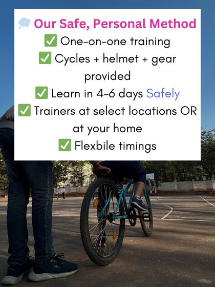 Learn to Cycle Safely - We use our 14-year method, focus on safety and confidence. Flexible timings, all ages welcome.