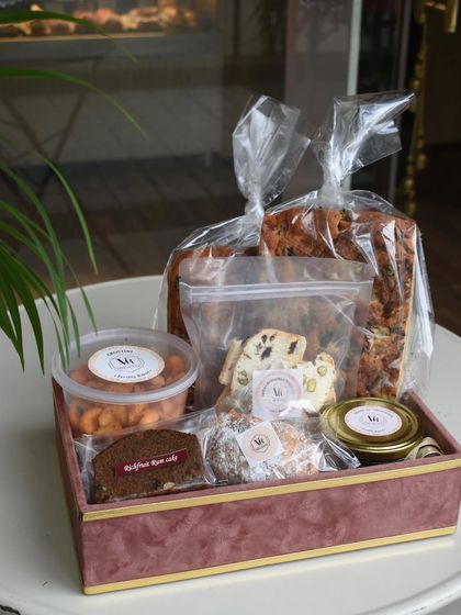 I make fresh, custom gift boxes for events and corporates with desserts and savory treats, all for pickup from Nerul.