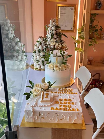 Bring me your Pinterest references or wild ideas. I do modern ombré, watercolor finishes, fresh flower toppers, fondant figurines, and personalized acrylics. I work with fresh cream cake options and rich chocolate ganache. For taste, my Tres Leches (eggless celebration cakes available!), Belgian chocolate, and Opera are crowd favorites.