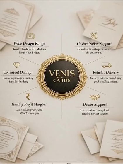 Namaste, main Neeraj hoon, Venis Cards ka dil. Shaadi ka card sirf kagaz nahi hai, yeh pehli yaad hai aapke parivaar ki. Humare yahan invite dena samman hai, blessings mangna hai. WhatsApp ki message bas dekhi jaati hai, card dil se mehsoos hota hai. Design banaate time main hamesha aapki kahani sunta hoon, har card mein thoda Ganesha, thoda heritage, aur poora aapka pyaar dikhna chahiye. Mumbai se, hum yaadein banate hain, sirf cards nahi.