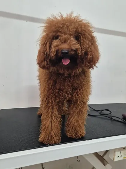 I give dogs gentle, stress-free grooming with haircuts, baths, nail care, dental cleaning, and pick-up drop in our AC van, handling even nervous or tough dogs with patience.