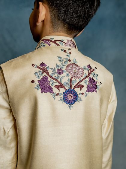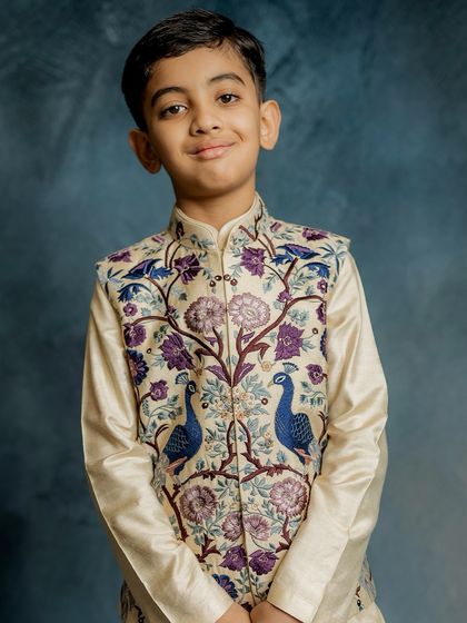 - Bundi Jackets: Our designer Bundi jackets for children are always a hit. From peacock embroidery to fun florals, these add that extra swag over any kurta.