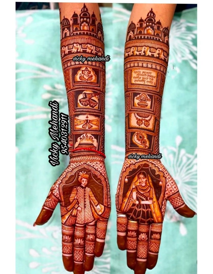 Your love story, told through intricate art. We specialize in full bridal mehndi that captures your entire wedding journey, from the doli and varmala to personalized portraits of you and your partner. Each design is a masterpiece, handcrafted with 100% natural henna for a rich, dark stain.