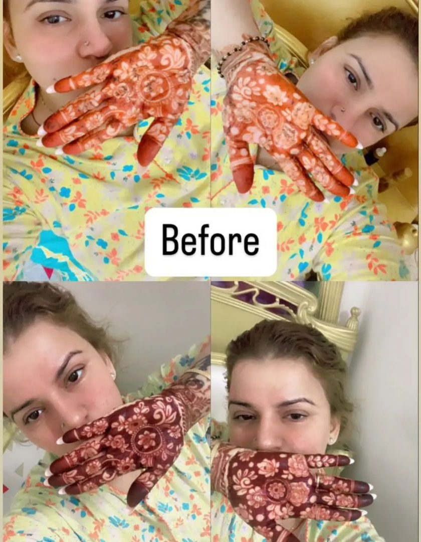 We guarantee a deep, rich, and long-lasting stain for your wedding. We prepare our own 100% natural henna paste to ensure its quality and safety, giving you the beautiful dark color every bride dreams of. See the stunning results for yourself.