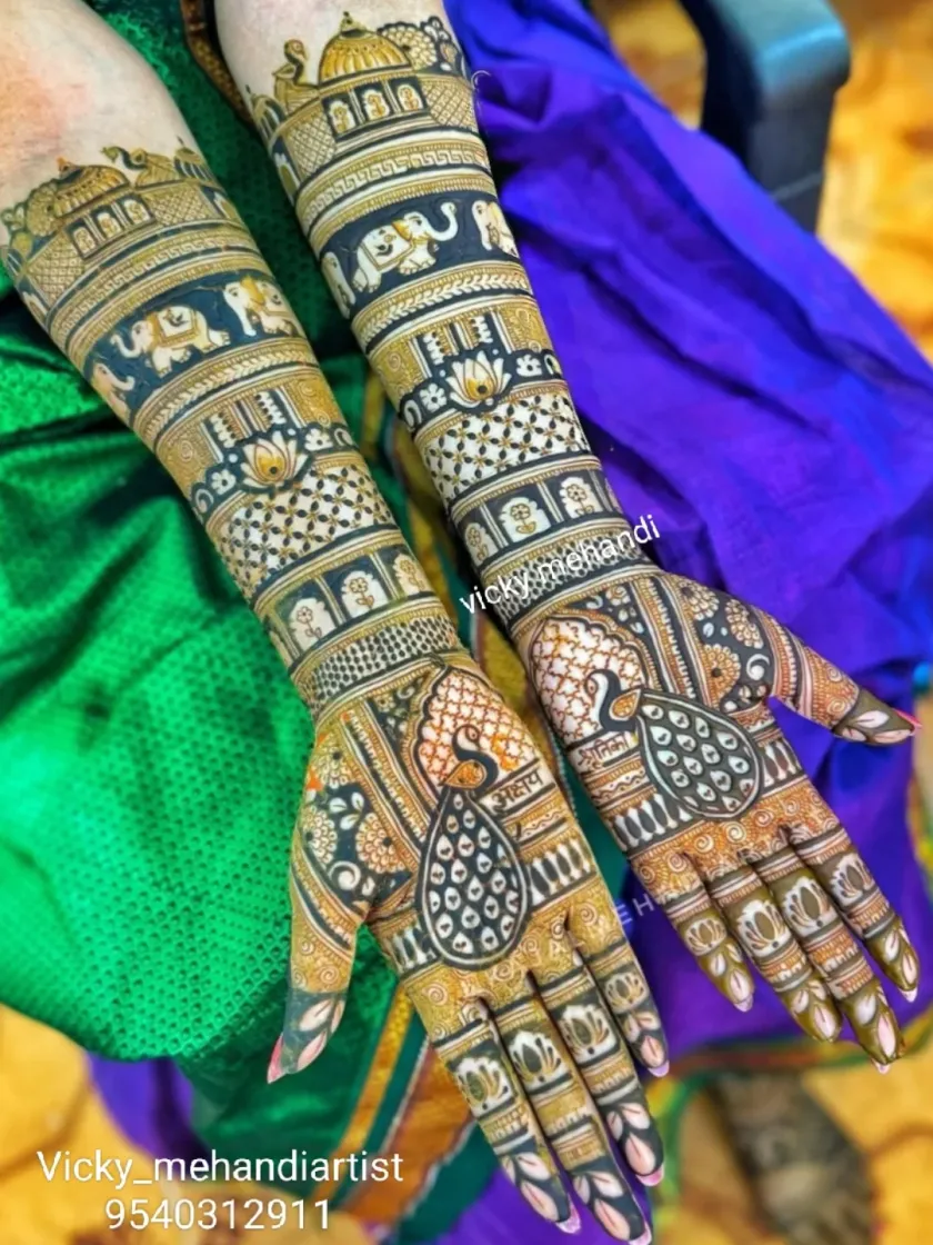 Timeless beauty for your special day. This collection features our expertise in classic mehndi motifs like peacocks, elephants, and lotuses, woven into dense, symmetrical patterns that cover your hands and arms. We offer a variety of styles, from delicate floral jaals to bold, traditional figures.