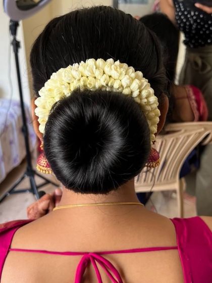 Bridal Makeup, Hairstyle & Saree Draping - I do natural bridal makeup, classic bun hairstyle, saree draping, and floral art for weddings.