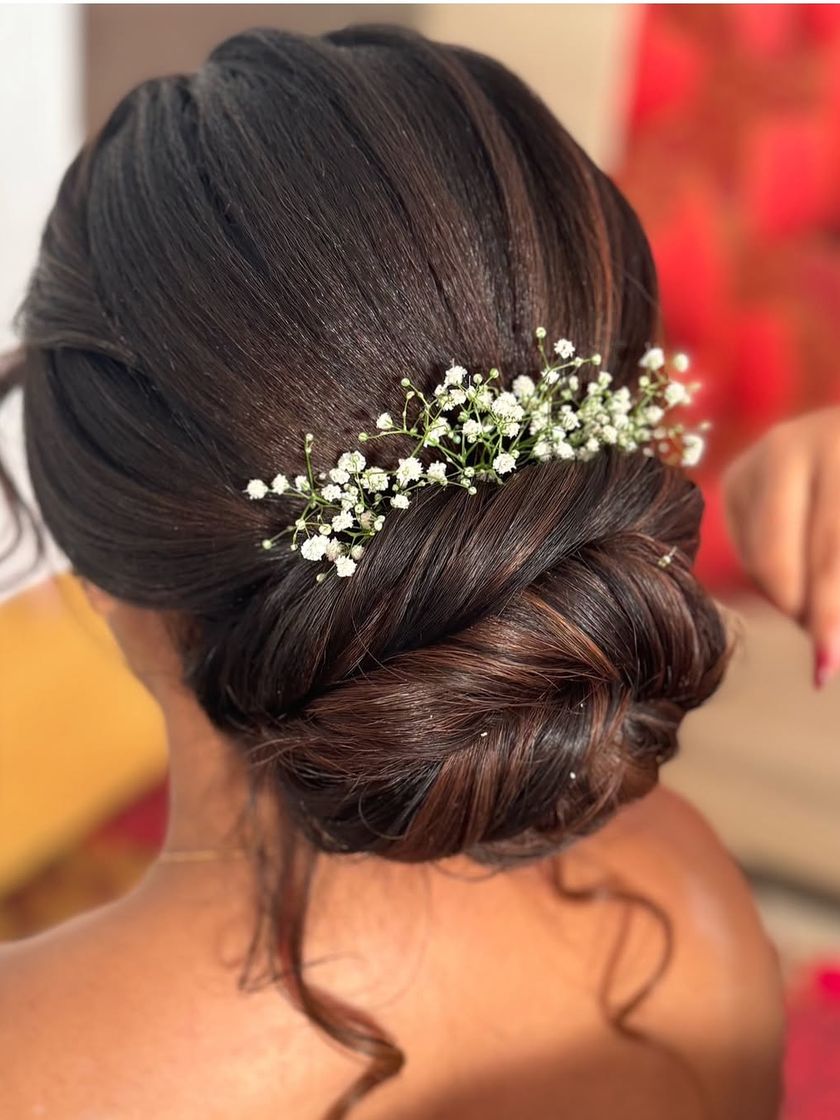 I create a wide range of hairstyles, from classic South Indian bridal buns adorned with fresh flowers to modern, elegant updos and braids. My classes teach you the techniques for achieving clean, long-lasting styles for any event.