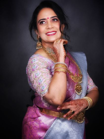 Bridal Makeup, Hairstyle & Saree Draping - I do natural bridal makeup, classic bun hairstyle, saree draping, and floral art for weddings.