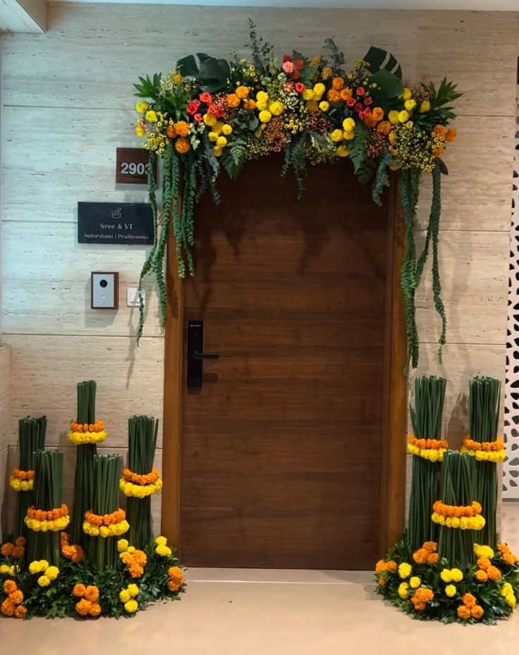A beautiful entrance sets the tone for any celebration. We design everything from traditional marigold torans and garlands to elaborate floral arches that transform your doorway into a stunning focal point.