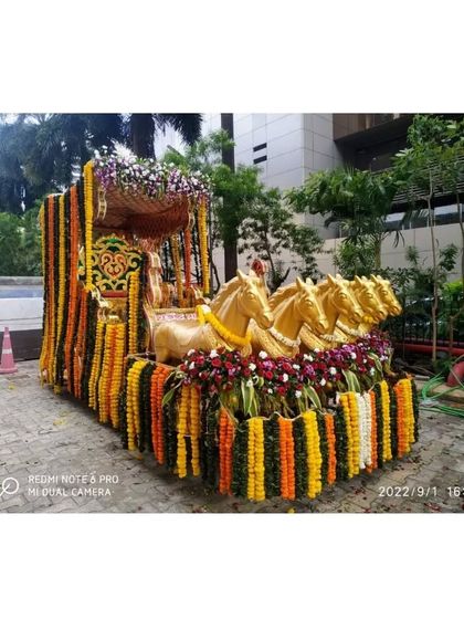 Beyond traditional setups, we also love taking on unique projects. This includes decorating festive chariots, bringing floral beauty to corporate offices, or creating special installations for commercial spaces.