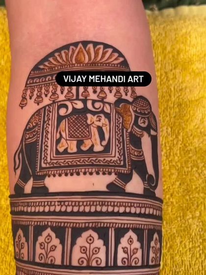 Elephants are a symbol of good luck, prosperity, and royalty, making them a popular choice for bridal mehndi. I enjoy drawing these majestic animals, from small repeating patterns to large, decorated figures.