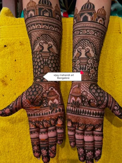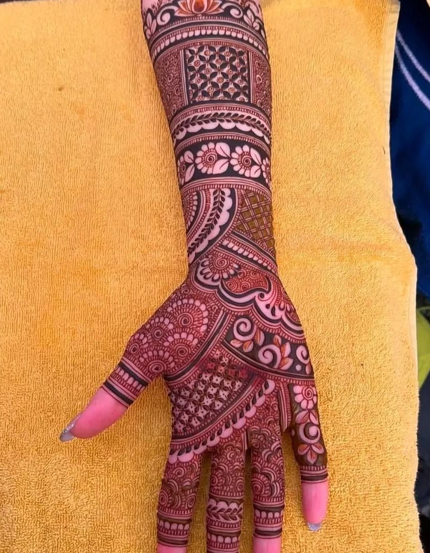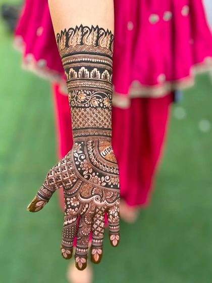 My specialty is creating luxurious, full-coverage bridal mehndi that extends from the fingertips to the elbows. These designs are packed with traditional motifs, fine lines, and symmetrical patterns to give you a truly unforgettable bridal look.