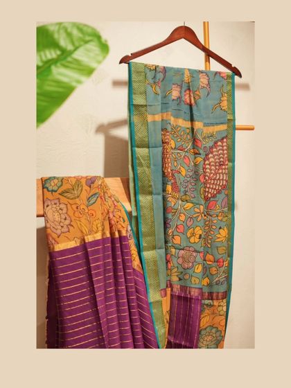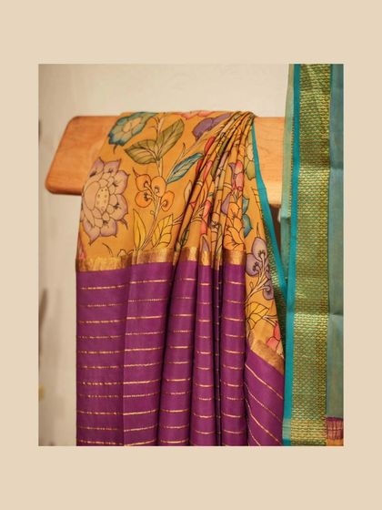 This collection celebrates the fusion of traditional weaving with other Indian art forms. Discover sarees featuring intricate hand embroidery like Kasuthi and Chikankari, or artistic prints like Kalamkari and Pichwai on luxurious silks like Tussar and Kanjivaram.