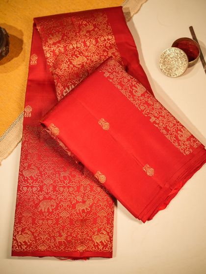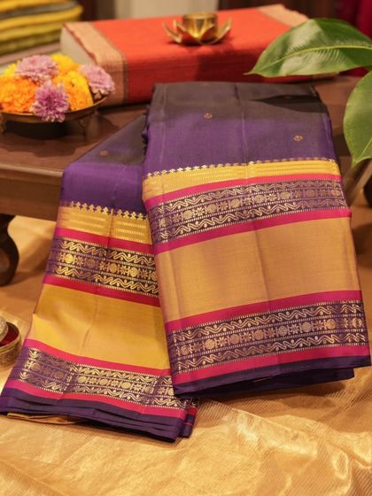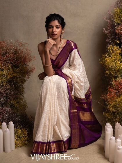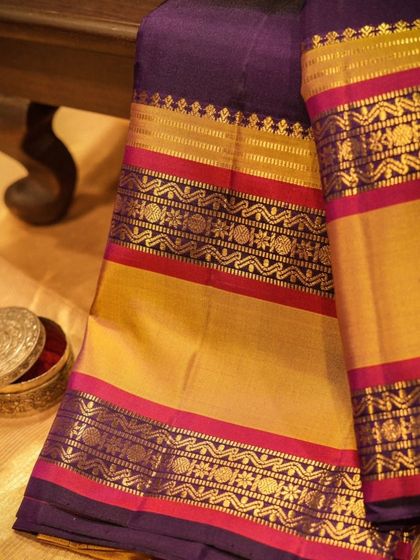 For the most important day of your life, we present our curated collection of bridal Kanjivarams and trousseau sarees. These drapes are defined by their opulent zari work, antique borders, and majestic motifs like the Yalli and Gandaberunda, designed to make you feel like royalty.