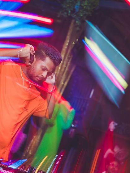 A look at my setup and me in action at various clubs and private events. Whether it's a massive club or an intimate party, I bring the same focus and energy to the decks, working the mixer and turntables to craft the perfect set.