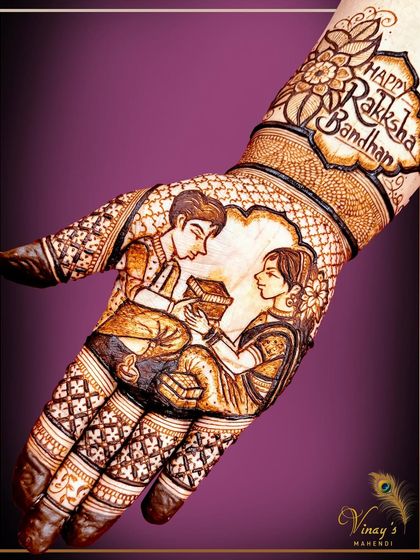 Festivals like Gangaur, Ganesh Chaturthi, Raksha Bandhan get special themed mehndi art - from Gauri-Shiva figures to portraits of Ganpati or brother-sister moments. Baby showers? I add cute elements like 'Mom to be' or 'Daddy to be' so even small occasions get a little mehndi magic.