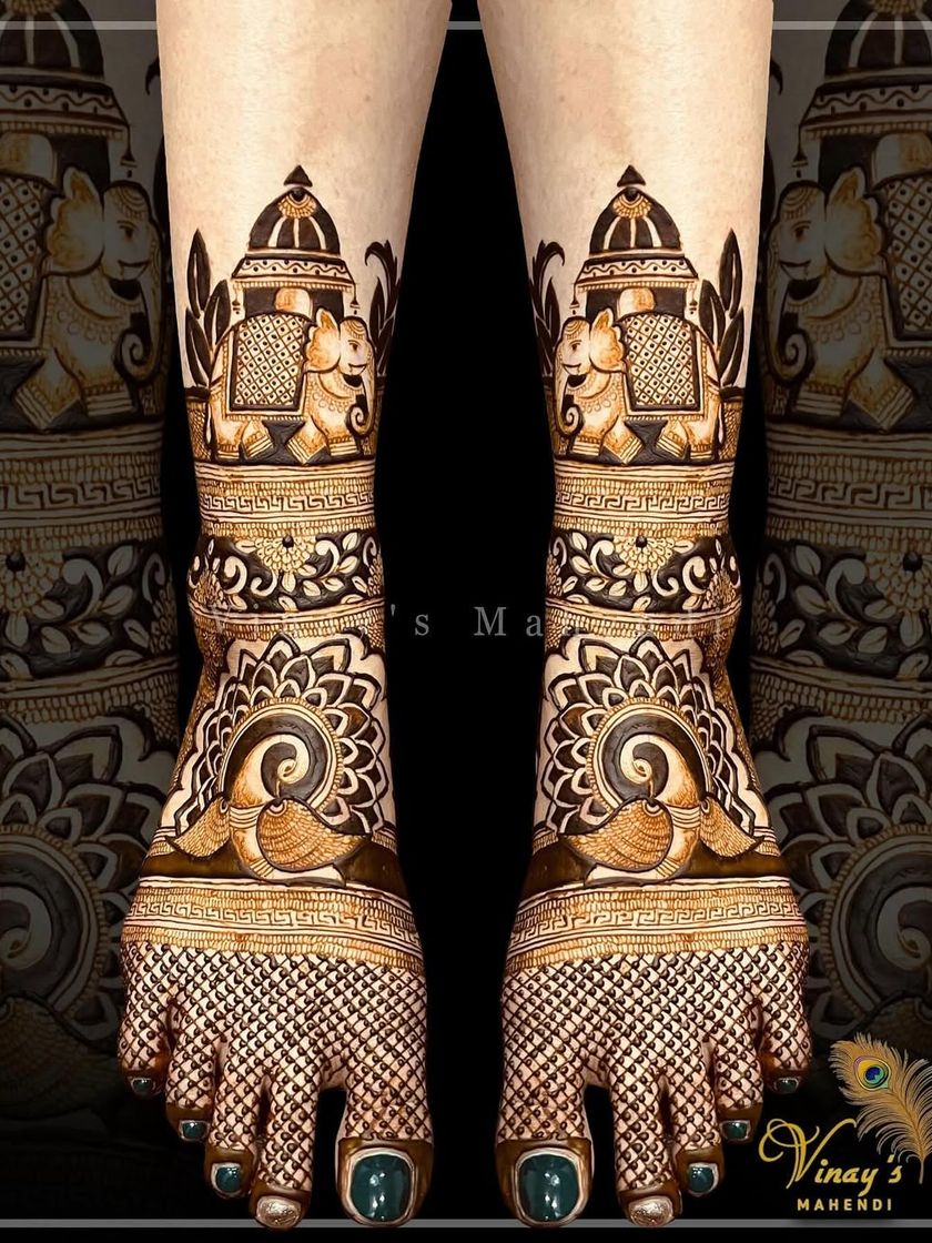 Complete your festive or bridal look with our beautiful foot mehndi. We offer a range of styles, from simple and elegant patterns to full-coverage designs that feature our signature peacock, elephant, and floral motifs.