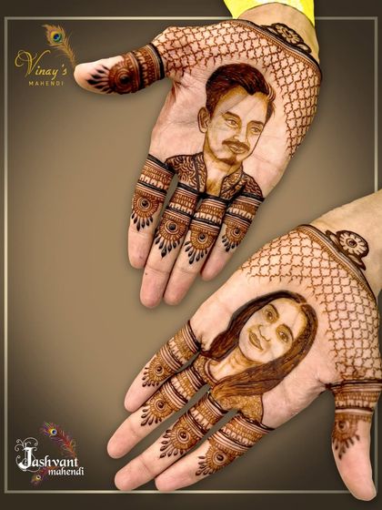 Make your mehndi truly your own with a custom portrait of you and your partner, or a stylish monogram of your initials. We specialize in capturing likenesses and creating unique symbols that tell your personal story.