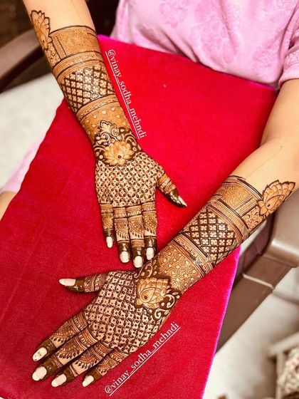 For those who love to adorn the back of their hands, this collection showcases our intricate full-arm and wrist-to-fingertip designs. We combine traditional patterns, floral motifs, and royal architecture to create stunning works of art.
