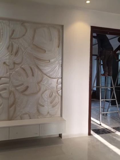 For contemporary homes and offices, I create statement walls with textured, flowing abstract art. These pieces are designed to play with light and shadow, adding depth and sophistication to any modern interior. I also offer unique techniques, like my painted "Tiles Effect" murals.