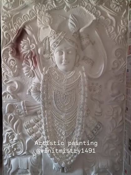 I create high-relief sculptural murals that bring a divine and serene presence into your home. Each piece, whether it's an intricate depiction of Shrinath Ji or a dynamic scene of Radha Krishna, is hand-sculpted and painted with immense detail and devotion to create a powerful spiritual focal point.