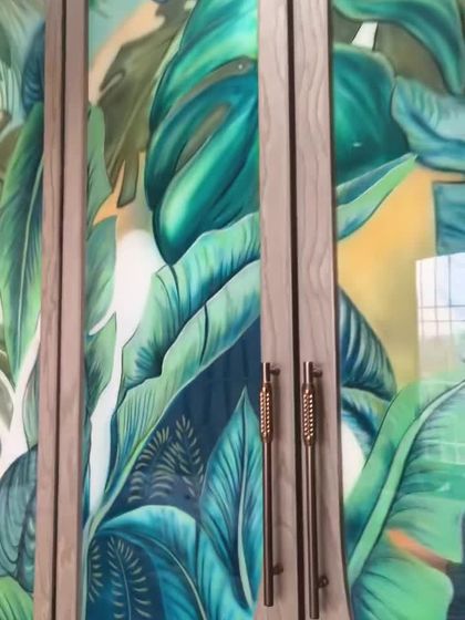 My art isn't limited to just walls. I also create custom paintings on other surfaces like glass windows and wardrobe doors. This is a great way to add a unique artistic touch to your interiors, whether it's a festive design for a shop window or a beautiful tropical scene on a bedroom wardrobe.