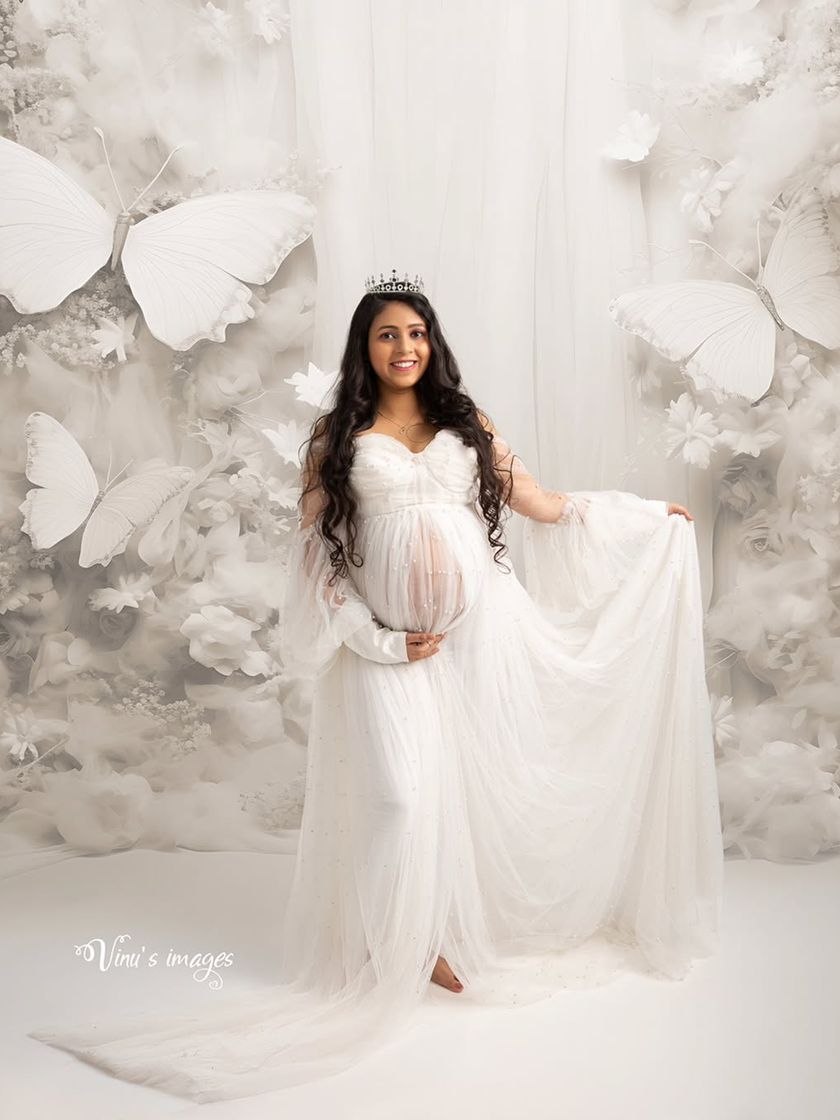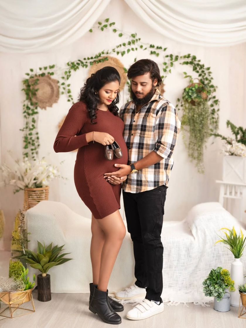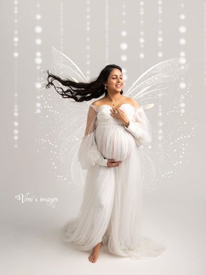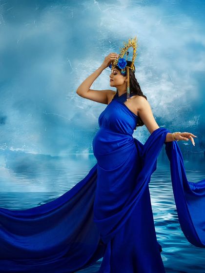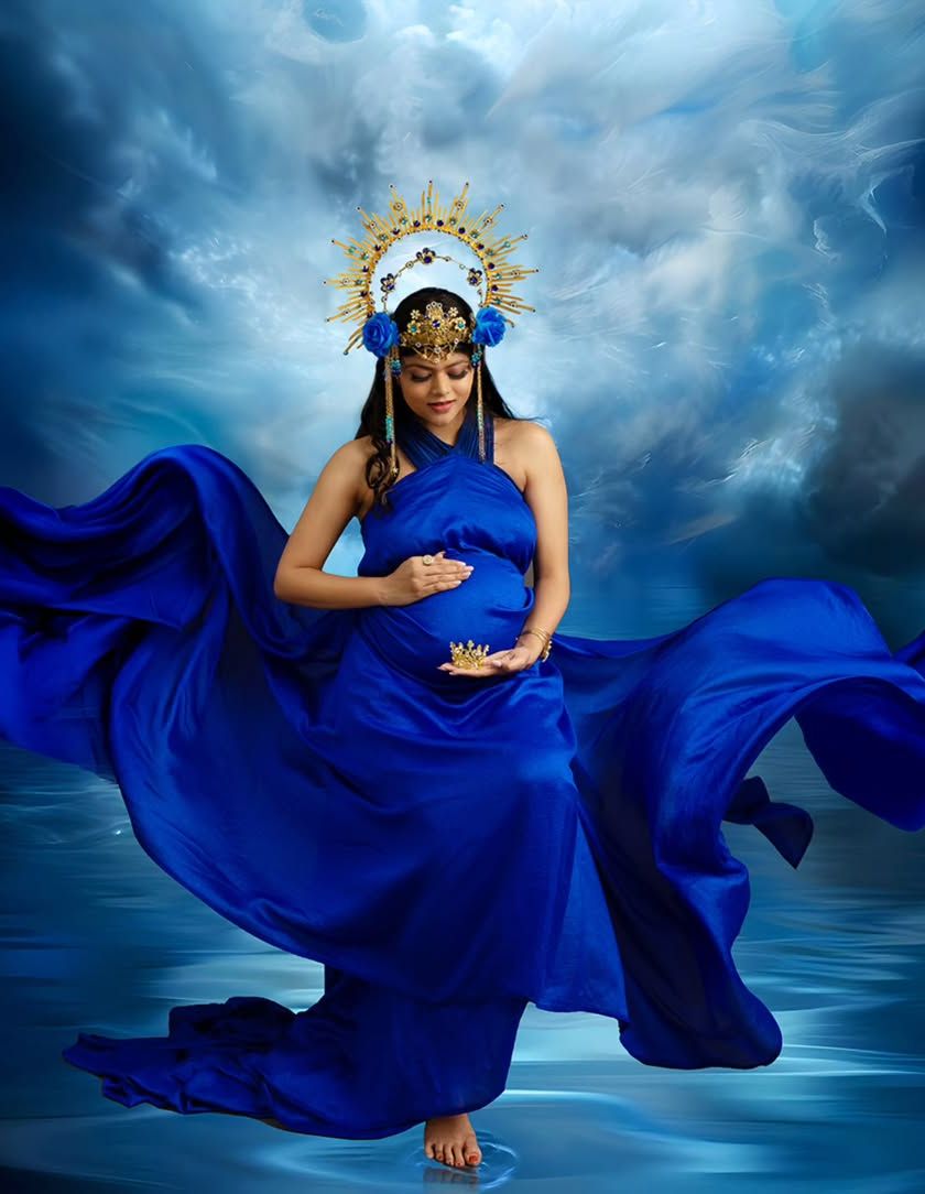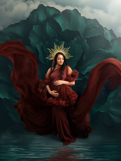 For the mother-to-be who wants to feel like a queen. My studio includes a curated wardrobe of dramatic and elegant maternity gowns in every color. I use flowing fabrics, artistic lighting, and props like crowns to create stunning, high-fashion portraits.