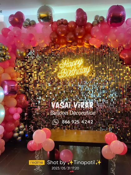 We decorate birthday parties for all ages with custom themes and setups, using balloon arches, shimmer walls, and props, and we work across Mumbai and nearby areas.