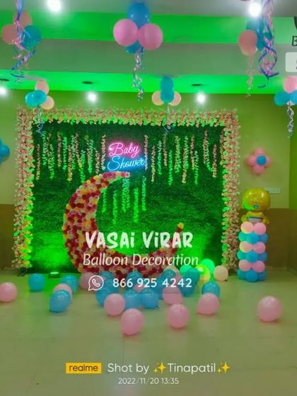 - Baby Shower (Dohale Jevan): Modern or traditional, I set up everything from ring and moon backdrops to decorated wooden jhulas. Maharashtrian vibes with marigold and cute Marathi signs like "Kunitori yenar ga" (someone special is coming) are my specialty. I can go pastel and floral or classic pink and blue with our baby shower pastel balloon setup.