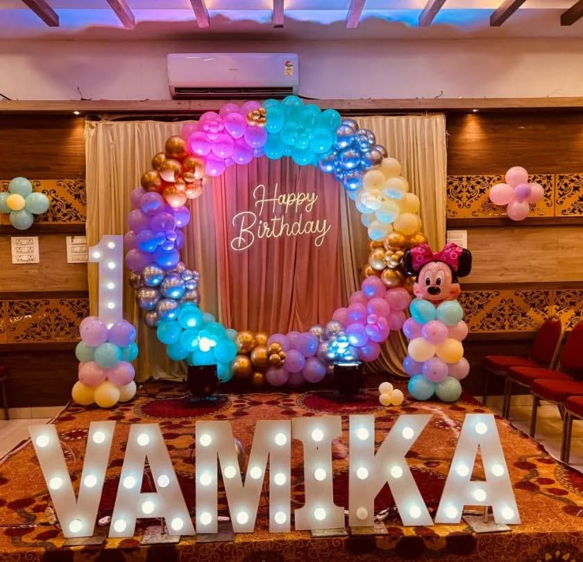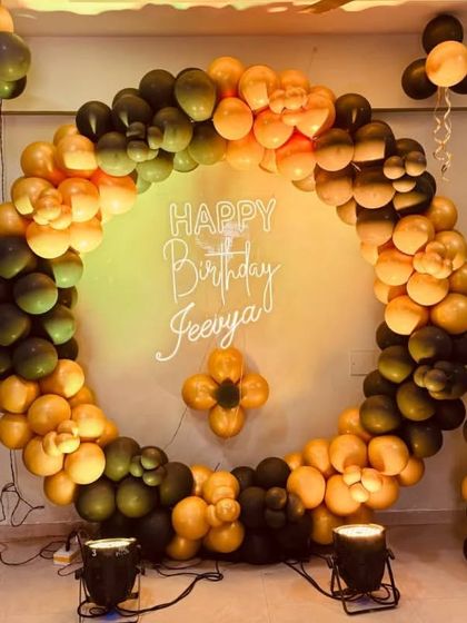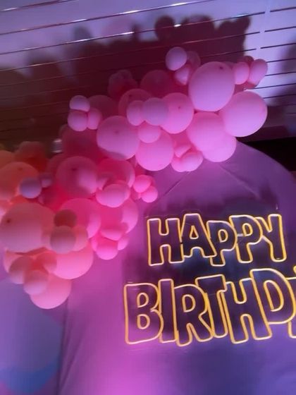 Here is a collection of other beautiful birthday setups we have created. Whether you prefer a simple and colorful ring backdrop or a custom design with neon lights and marquee numbers, we work with you to bring your vision to life for any age.