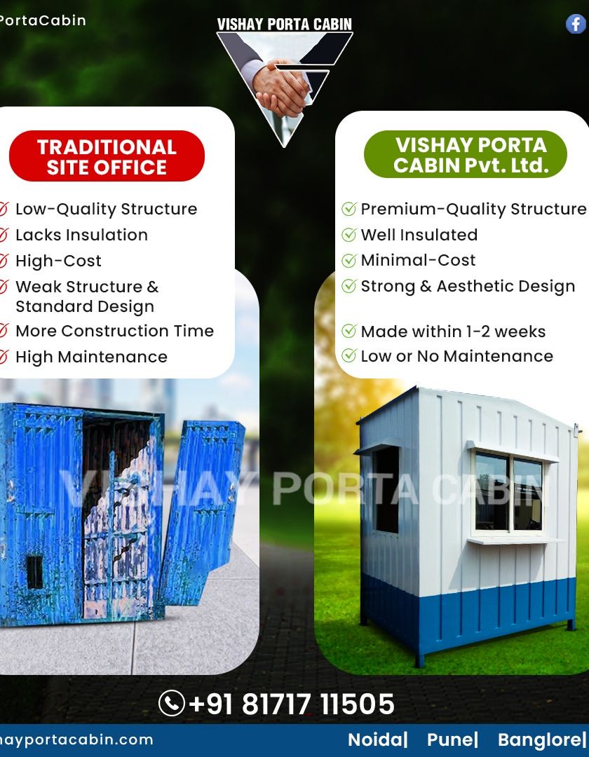 I build custom site offices and portable workspaces that are ready for use, often in under a week. These cabins come fully equipped with electrical fittings, workstations, manager rooms, attached toilets, and pantries, all designed to your specific layout and size requirements.