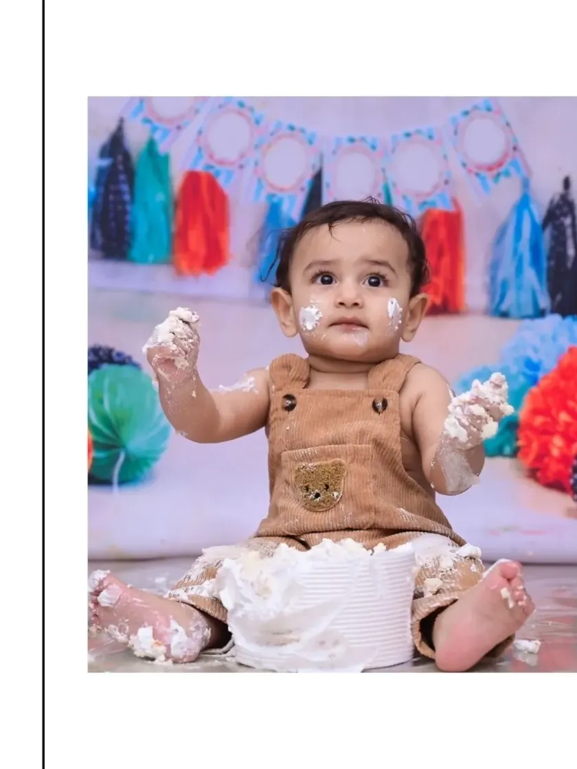 Before the cake comes out, we capture timeless portraits. I'll dress your little one in a cute outfit from my collection and set the scene with one of my many creative backdrops, from dreamy moons to playful beaches. These are the classic, frame-worthy shots that beautifully capture your child's personality at this milestone age.