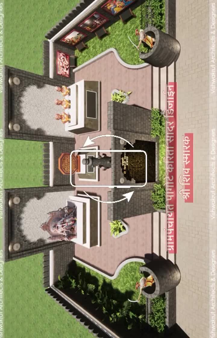 This design proposal for the Grampanchayat of Pagote, Uran, is a tribute to our rich Maratha history. The architecture is inspired by forts, featuring bastion walls, a central statue of Chhatrapati Shivaji Maharaj, 3D murals of historical events, and the iconic Swarajyachi Rajmudra.