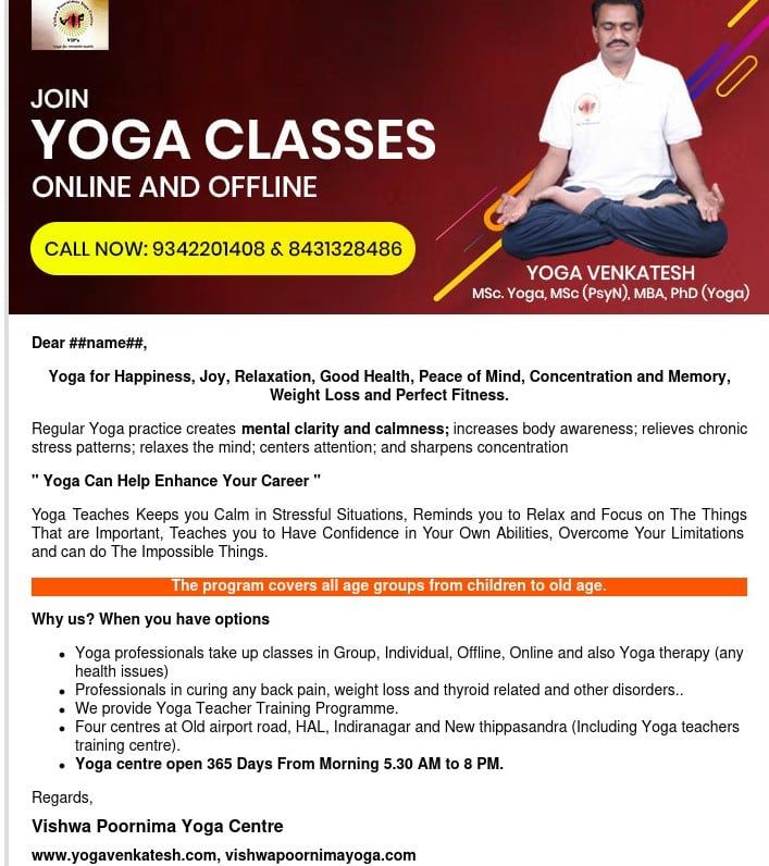 At Vishwa Poornima, you join a family. This gallery shows our vibrant community in action, from group classes filled with positive energy to introductions of my dedicated team of male and female instructors. We are here to support you, online or at our centers.