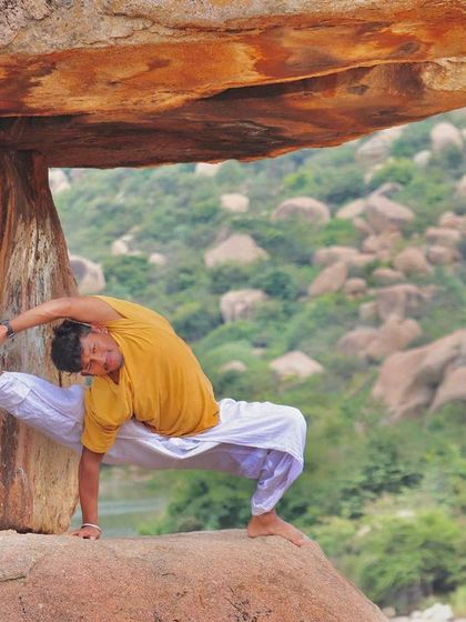 I lead small groups on treks in places like Hampi and the Himalayas where we do yoga and meditation outdoors, combining guided hikes with practical yoga sessions in nature.