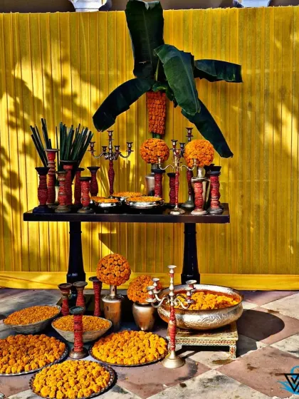 - Handle everything from designing big custom backdrops to sorting the tiniest puja thali details.