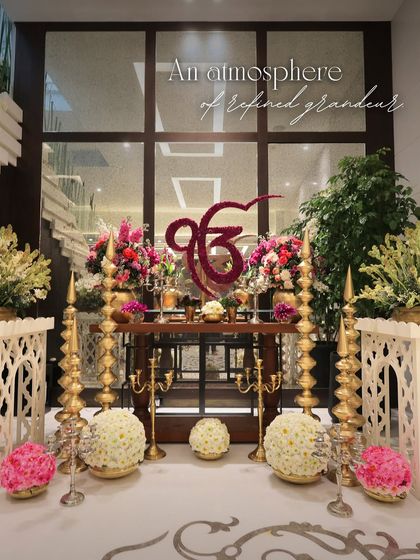 I specialize in creating elegant and traditional decor for Anand Karaj functions that honor the sanctity of the ceremony. My designs often feature soft color palettes, custom structures inspired by Sikh architecture, and symbolic floral art like the Ek Onkar.