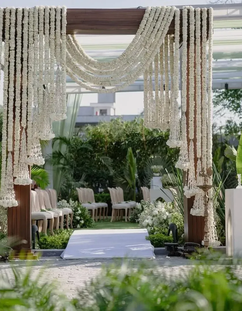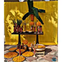I love working with natural surroundings to create spiritual event spaces that feel both organic and sacred. Using elements like wooden structures, fresh foliage, and delicate floral arrangements, I design serene outdoor settings for pujas, weddings, and other ceremonies.